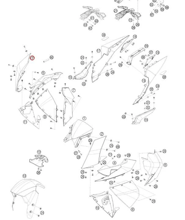 Topkuip rechts, geschikt voor KTM 1190 RC8R 09-12, kleur Zwart