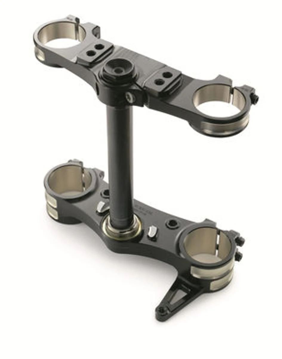 Kleurverschillen tussen de bovenste en onderste kroonplaat kunnen technisch niet worden uitgesloten.CNC gefreesde aluminium kroonplaat. Gemaakt van zeer sterk aluminium. Elegant geanodiseerd oppervlak. Stijver en lichter dan de standaard kroonplaat. Biedt nauwkeuriger handling tijdens harde remmanoeuvres. Betere drukverdeling in de klemming gebied van de vork. Perfect voor gebruik op het circuit