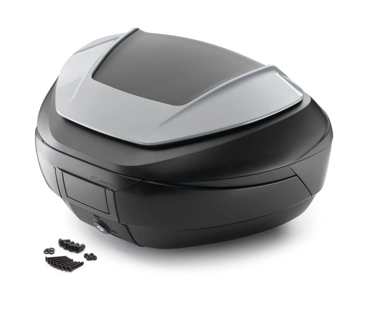 Met 48 liter inhoud, kunt u in deze topkoffer gemakkelijk twee helmen opbergen. De koffer is voorzien van een praktisch druk systeem om de koffer te openen.