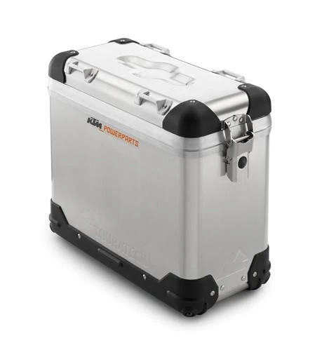 Robuuste en elegante aluminium top koffer, die alle testen met vlag en wimpel passeert, van dagelijks rijden tot avontuur: Gemaakt van 1,5mm dik aluminium. Ontwerp voor extreem gebruik. Compleet waterdicht. Makkelijke montage. Geteste hoge kwaliteit, afsluitbare stalen sloten. Ingebouwde sloten (exclusief) kunnen gemonteerd worden zonder te hoeven boren. Maten: 443mm x 203mm x 393mm, inhoud 31 liter, gewicht 4.1 kg en een maximale draagkracht van 10kg.