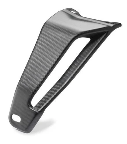 Originele carbon uitlaatsteun ter vervanging van de passagier voetstep. Geeft de motor een sportieve uitlaatstraling. Passend voor de onder andere de Akrapovic Slip-On Line uitlaatdemper. Let op: past niet in combinatie met het complete Akrapovic Evolution Line uitlaatsysteem.